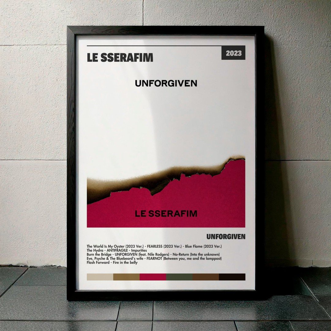 • Diseño Exclusivo: Cuadro de alta calidad basado en la portada del álbum UNFORGIVEN de LE SSERAFIM.
