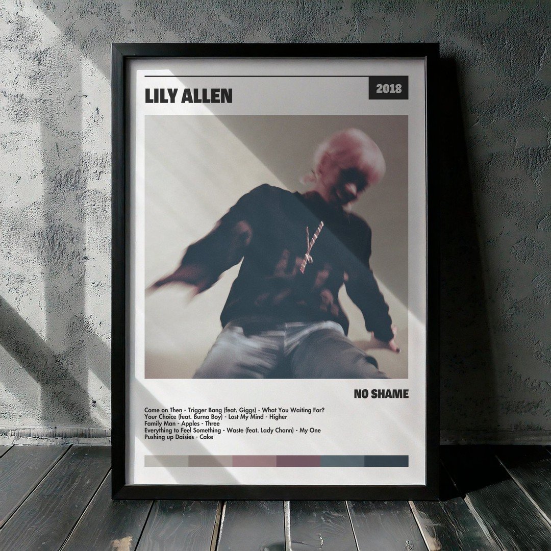 Nuestra colección de cuadros de Lily Allen captura la esencia de sus álbumes más icónicos, presentados en un elegante estilo, en este caso te presentamos el de su disco No Shame.