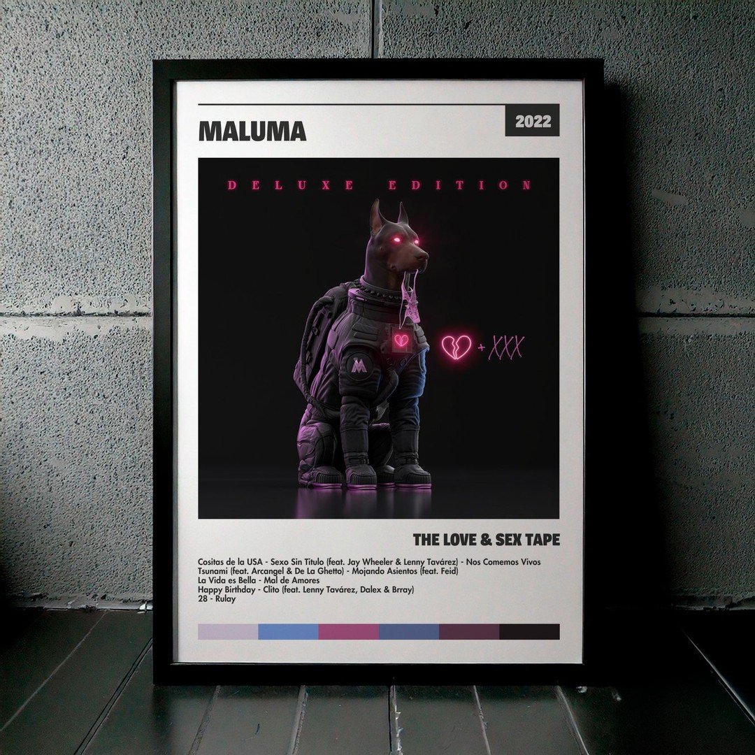 • Diseño Exclusivo: Cuadro de alta calidad basado en la portada del álbum The Love & Sex Tape de Maluma.