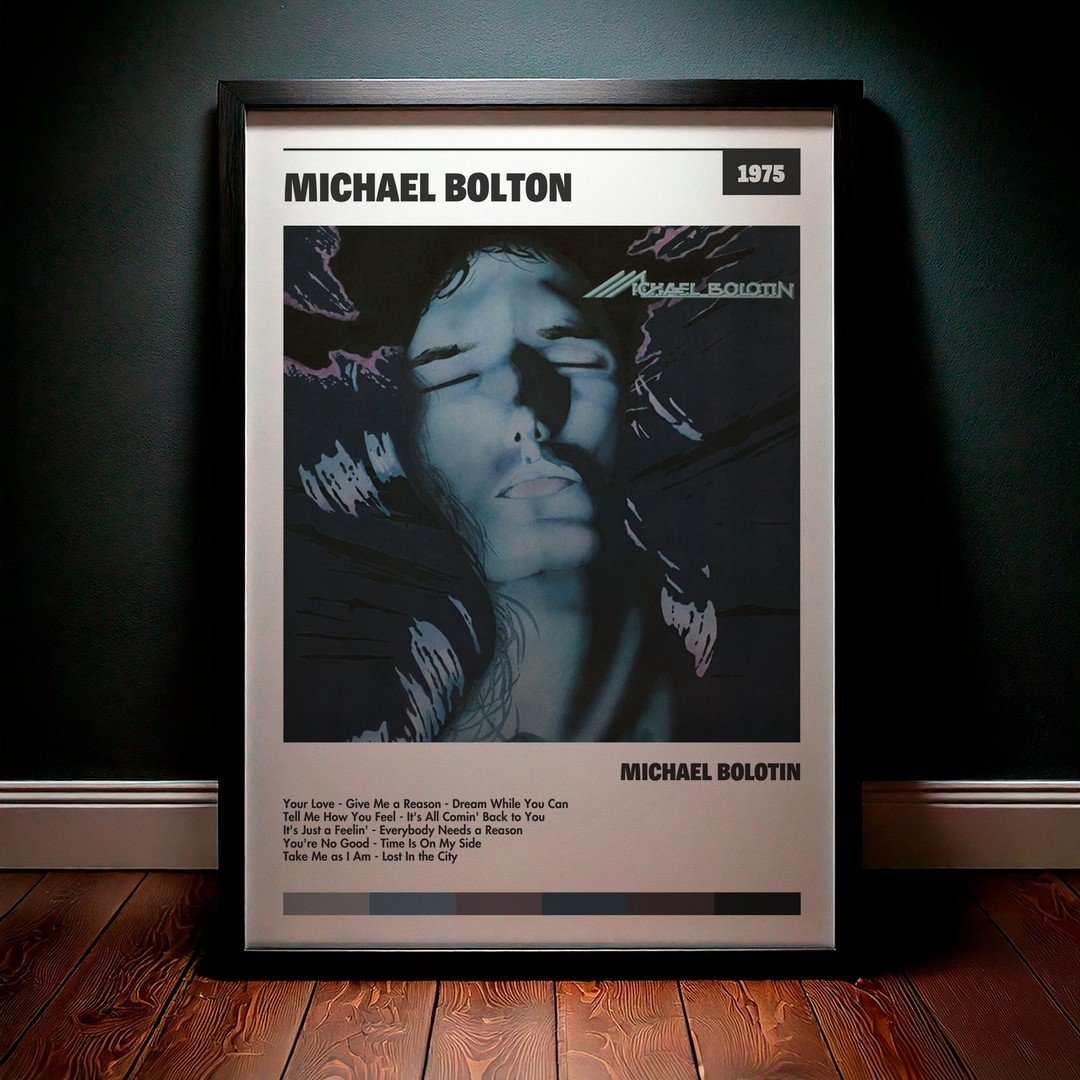 Nuestra colección de cuadros de Michael Bolton captura la esencia de sus álbumes más icónicos, presentados en un elegante estilo, en este caso te presentamos el de su disco Michael Bolotin.