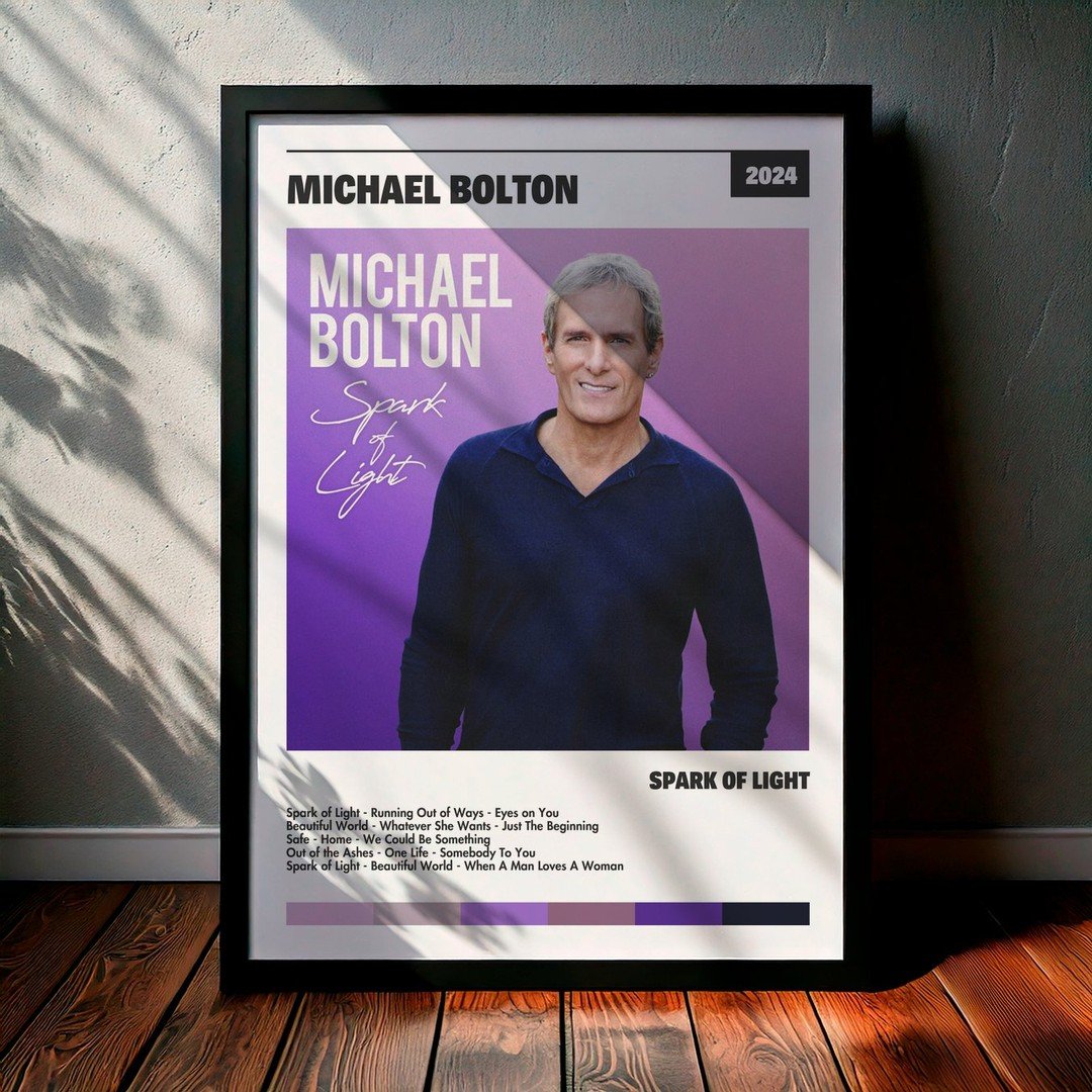 Nuestra colección de cuadros de Michael Bolton captura la esencia de sus álbumes más icónicos, presentados en un elegante estilo, en este caso te presentamos el de su disco Spark of Light.