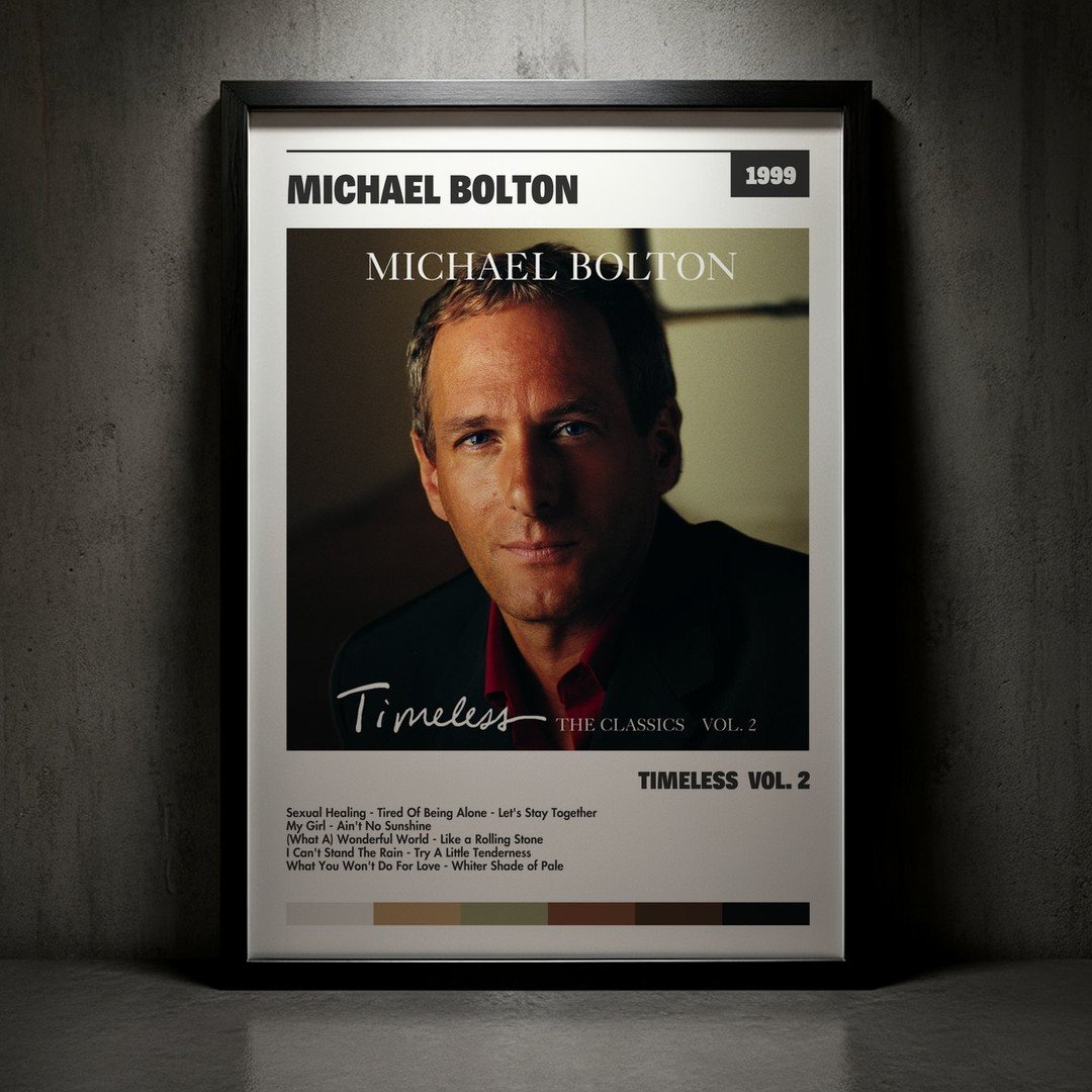 Nuestra colección de cuadros de Michael Bolton captura la esencia de sus álbumes más icónicos, presentados en un elegante estilo, en este caso te presentamos el de su disco Timeless Vol. 2.