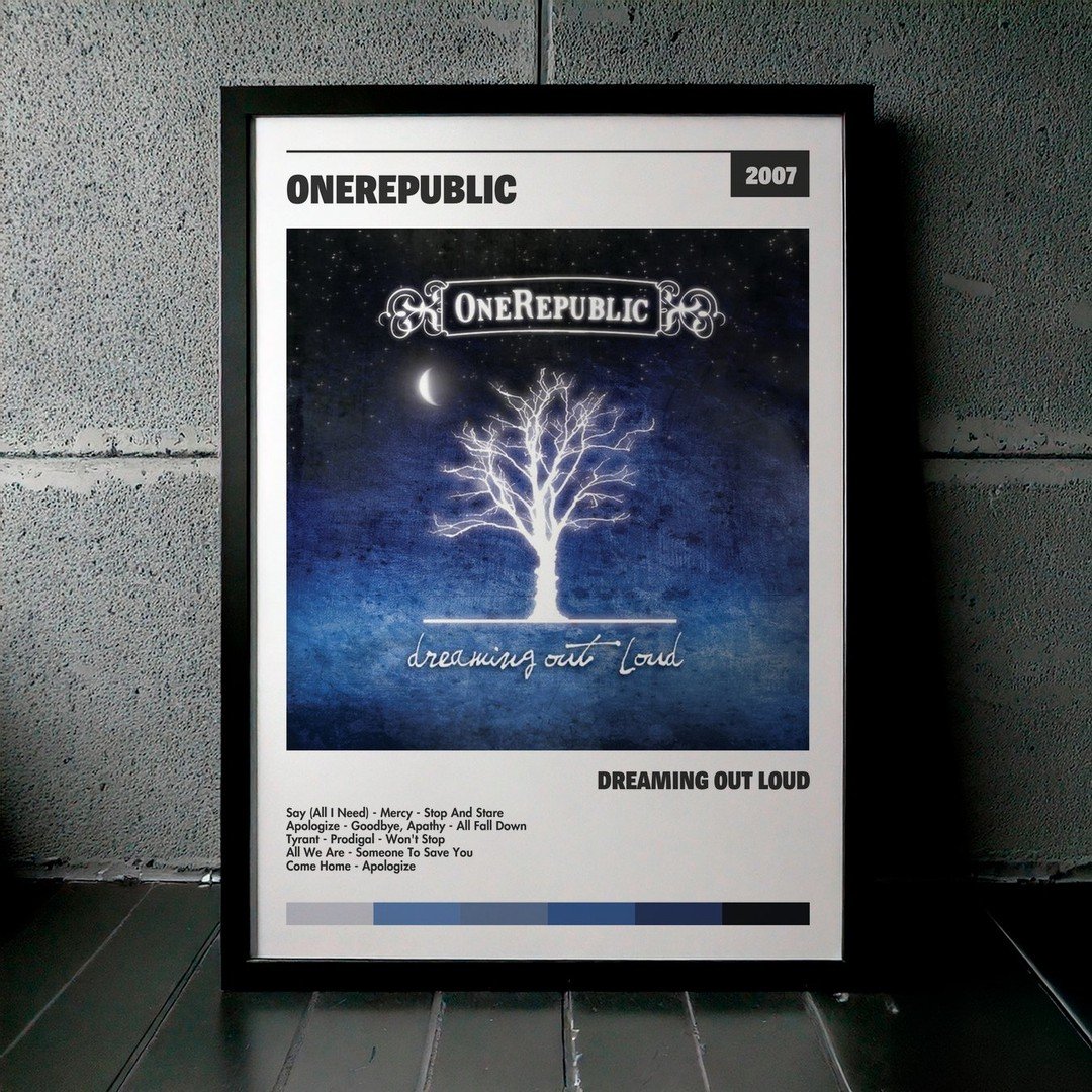 Nuestra colección de cuadros de OneRepublic captura la esencia de sus álbumes más icónicos, presentados en un elegante estilo, en este caso te presentamos el de su disco Dreaming Out Loud.