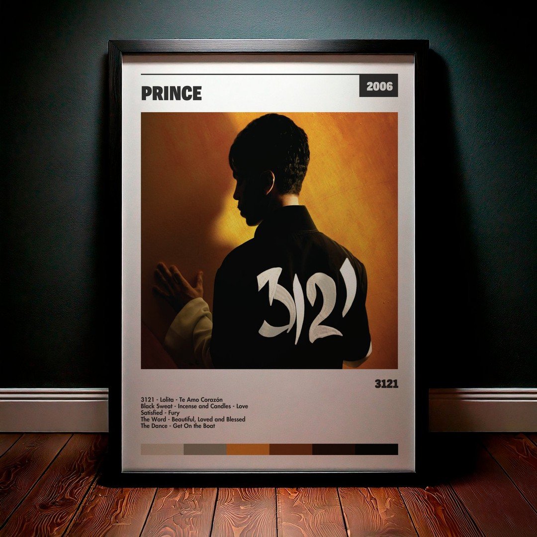 Nuestra colección de cuadros de Prince captura la esencia de sus álbumes más icónicos, presentados en un elegante estilo, en este caso te presentamos el de su disco 3121.