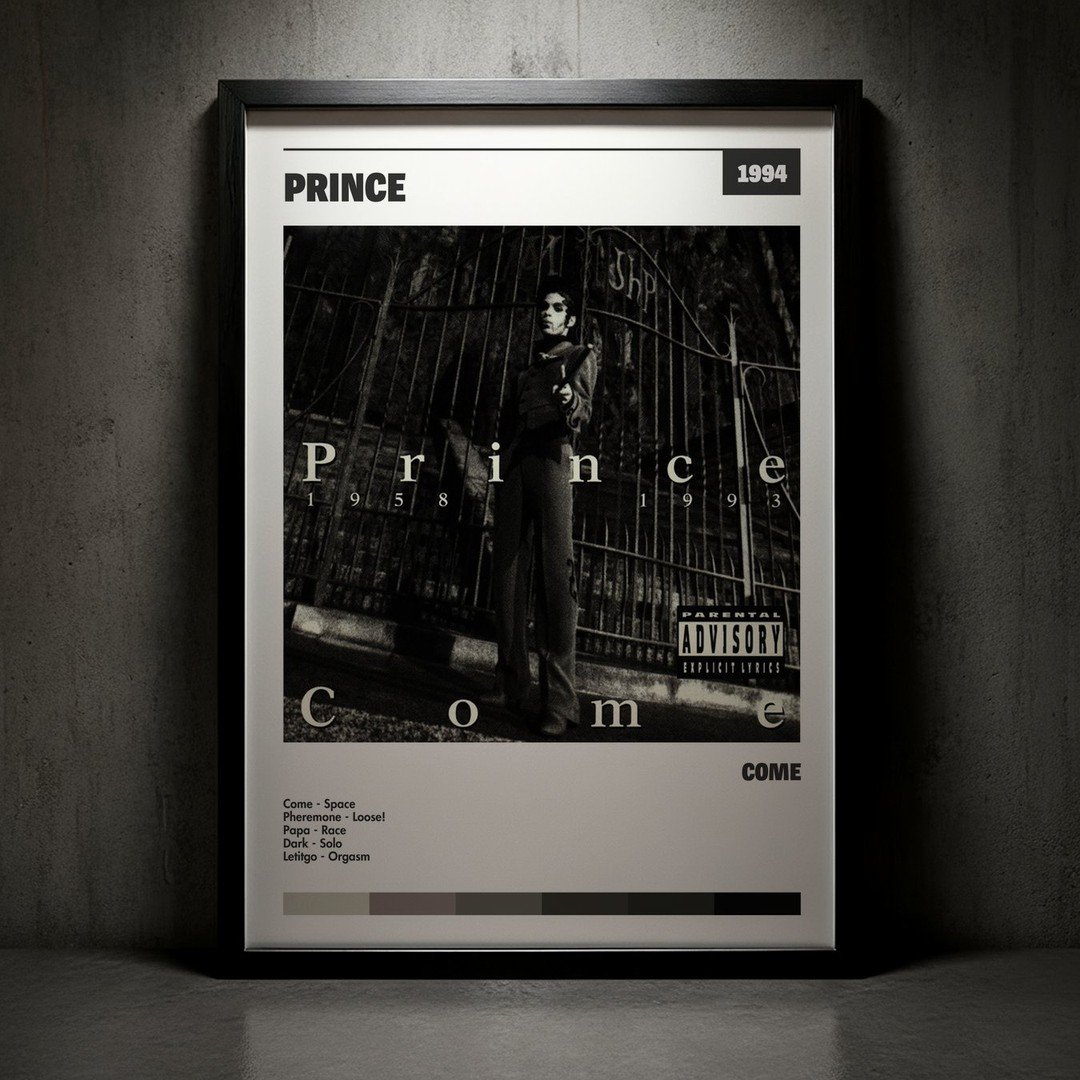Nuestra colección de cuadros de Prince captura la esencia de sus álbumes más icónicos, presentados en un elegante estilo, en este caso te presentamos el de su disco Come.