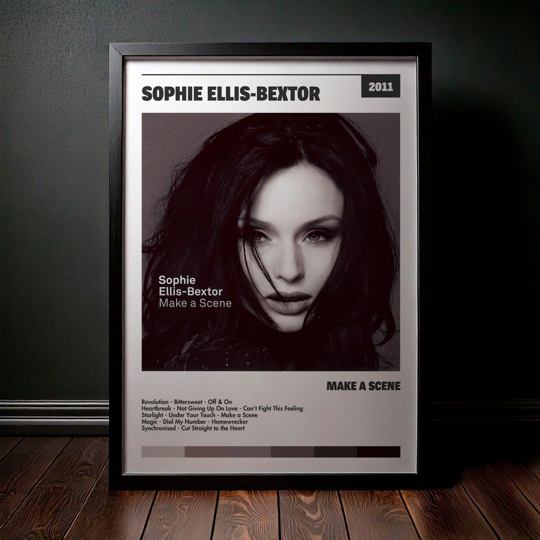 Nuestra colección de cuadros de Sophie Ellis-Bextor captura la esencia de sus álbumes más icónicos, presentados en un elegante estilo, en este caso te presentamos el de su disco Make a Scene.
