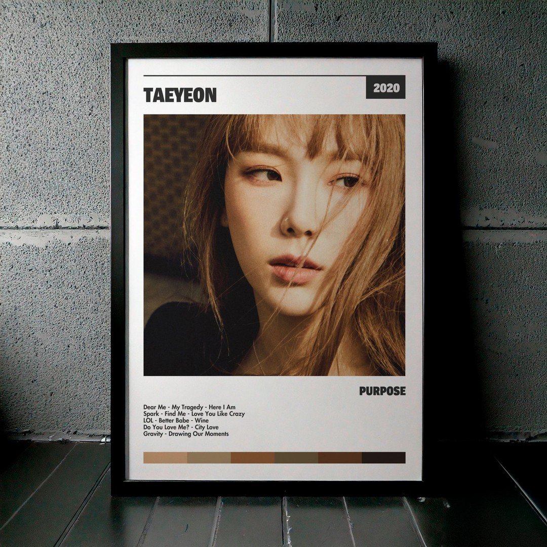 Nuestra colección de cuadros de TAEYEON captura la esencia de sus álbumes más icónicos, presentados en un elegante estilo, en este caso te presentamos el de su disco Purpose.