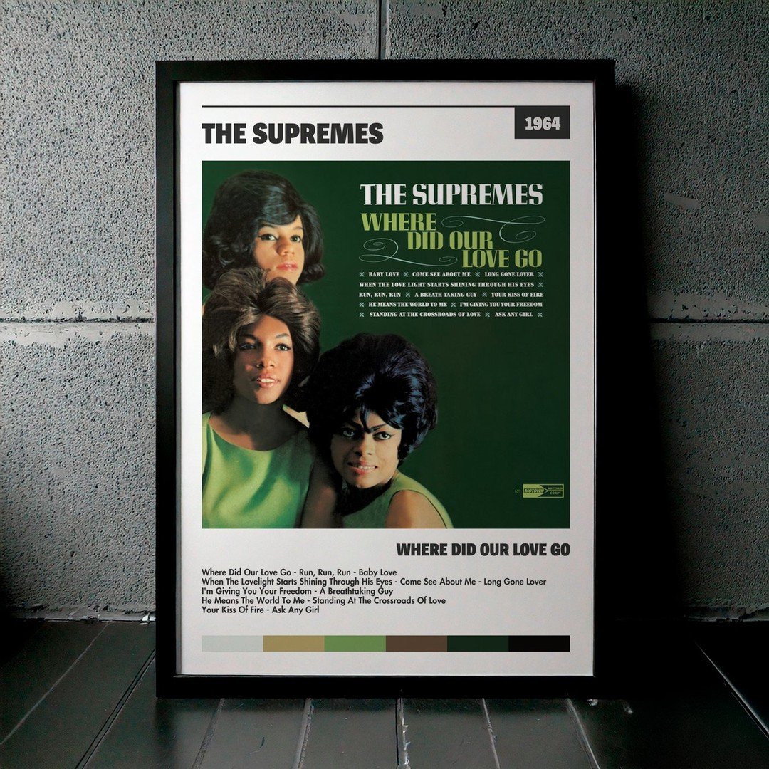 Nuestra colección de cuadros de The Supremes captura la esencia de sus álbumes más icónicos, presentados en un elegante estilo, en este caso te presentamos el de su disco Where Did Our Love Go.