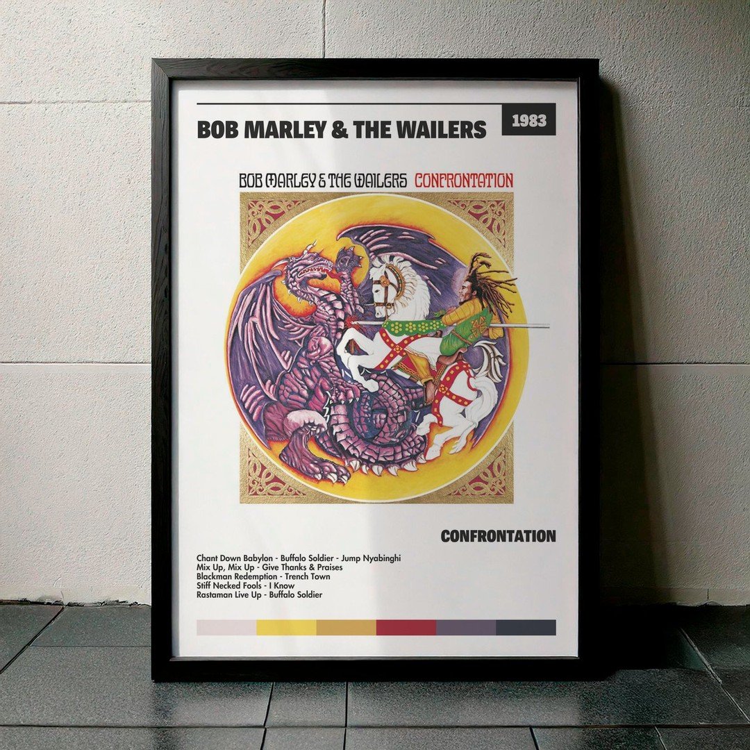 • Diseño Exclusivo: Cuadro de alta calidad basado en la portada del álbum Confrontation de Bob Marley & The Wailers.