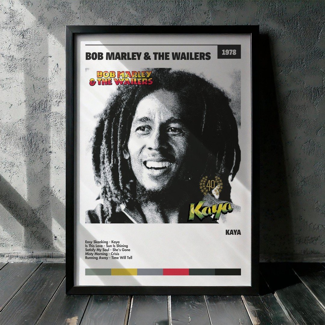 Nuestra colección de cuadros de Bob Marley & The Wailers captura la esencia de sus álbumes más icónicos, presentados en un elegante estilo, en este caso te presentamos el de su disco Kaya.