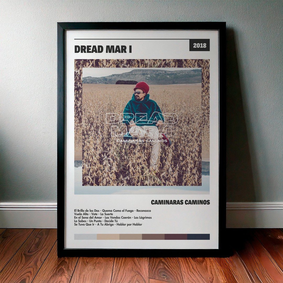Nuestra colección de cuadros de Dread Mar I captura la esencia de sus álbumes más icónicos, presentados en un elegante estilo, en este caso te presentamos el de su disco Caminarás Caminos.