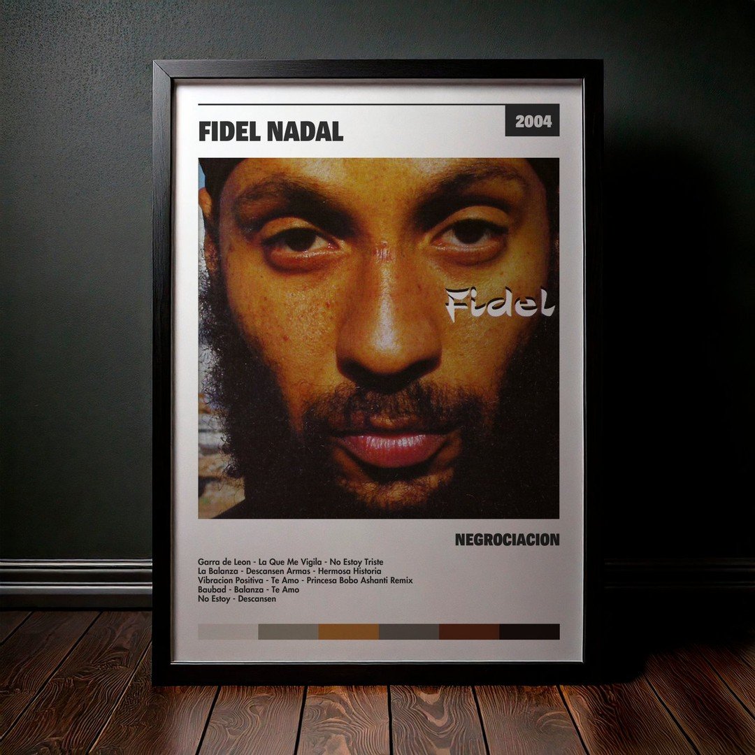 Nuestra colección de cuadros de Fidel Nadal captura la esencia de sus álbumes más icónicos, presentados en un elegante estilo, en este caso te presentamos el de su disco Negrociación.