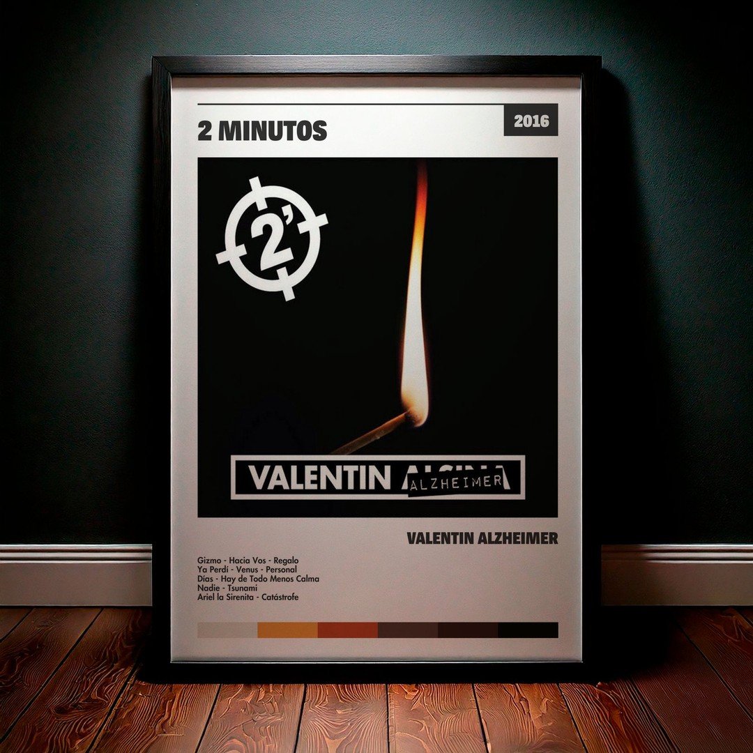 Nuestra colección de cuadros de 2 minutos captura la esencia de sus álbumes más icónicos, presentados en un elegante estilo, en este caso te presentamos el de su disco Valentin Alzheimer.