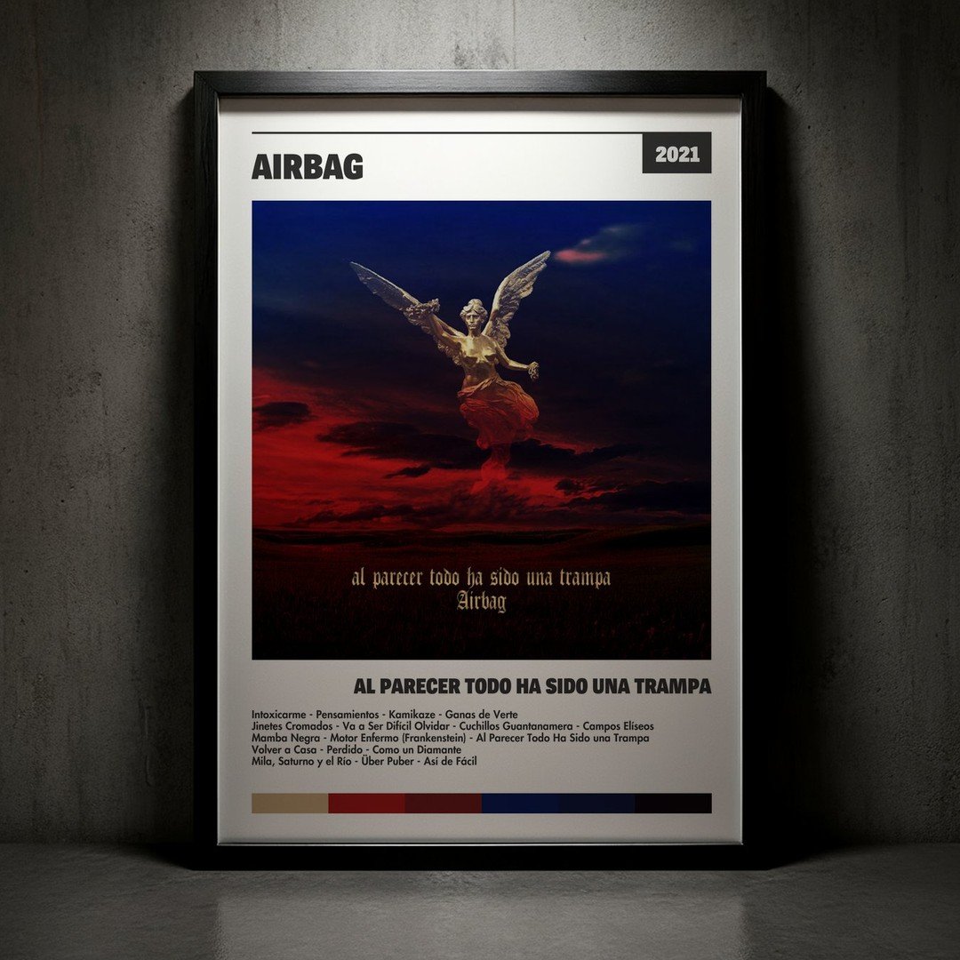 • Diseño Exclusivo: Cuadro de alta calidad basado en la portada del álbum Al Parecer Todo Ha Sido una Trampa de Airbag.