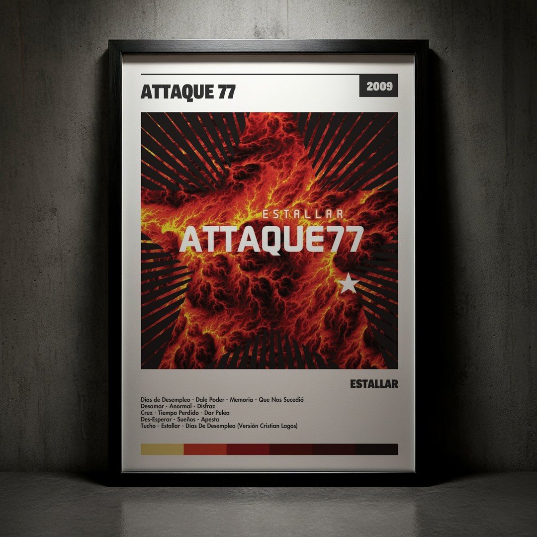 • Diseño Exclusivo: Cuadro de alta calidad basado en la portada del álbum Estallar de Attaque 77.