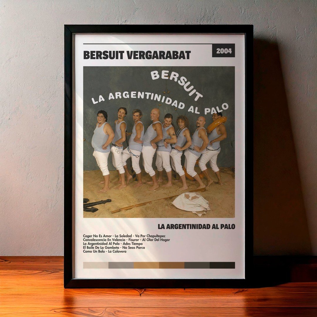 Nuestra colección de cuadros de Bersuit Vergarabat captura la esencia de sus álbumes más icónicos, presentados en un elegante estilo, en este caso te presentamos el de su disco La Argentinidad Al Palo.