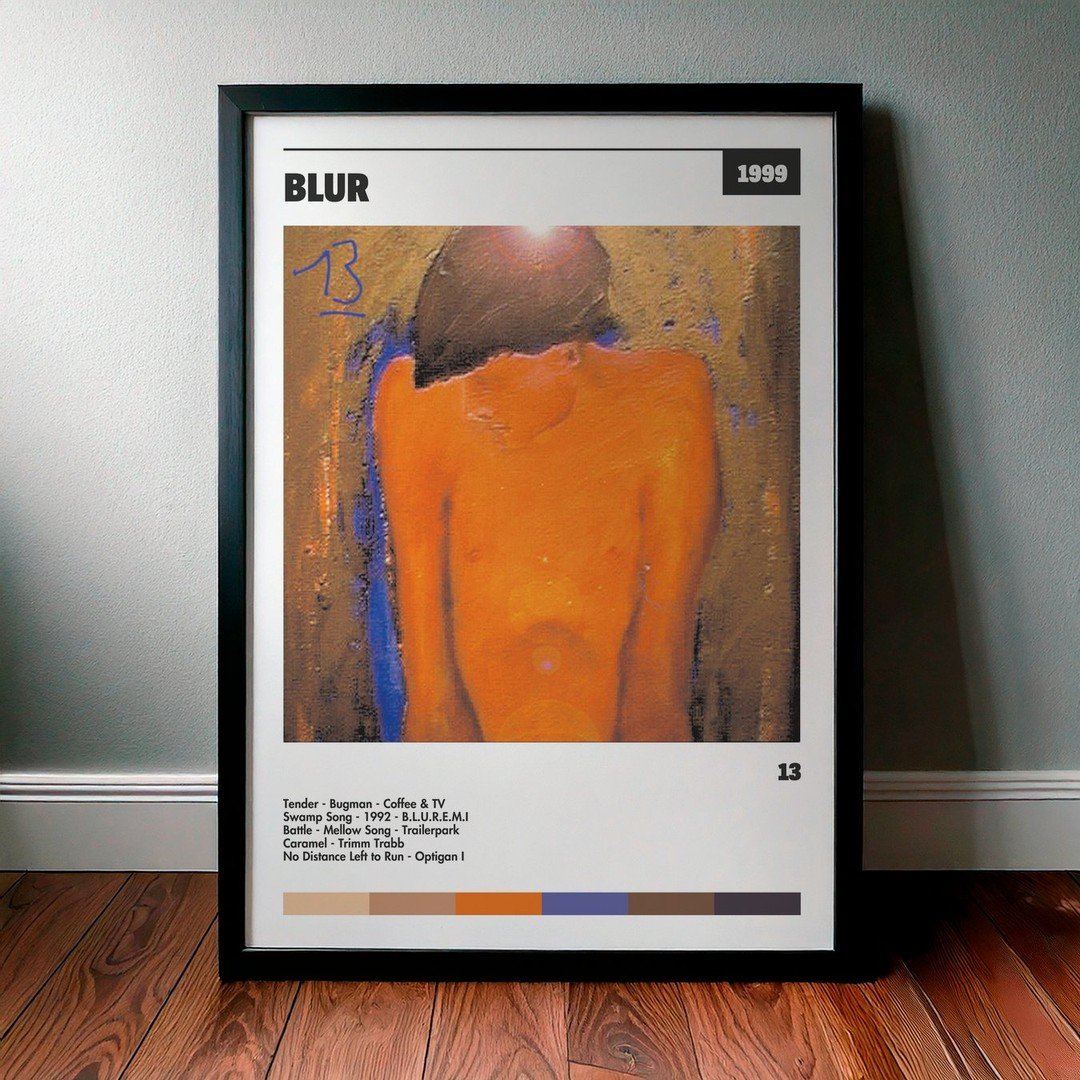 Nuestra colección de cuadros de Blur captura la esencia de sus álbumes más icónicos, presentados en un elegante estilo, en este caso te presentamos el de su disco 13.