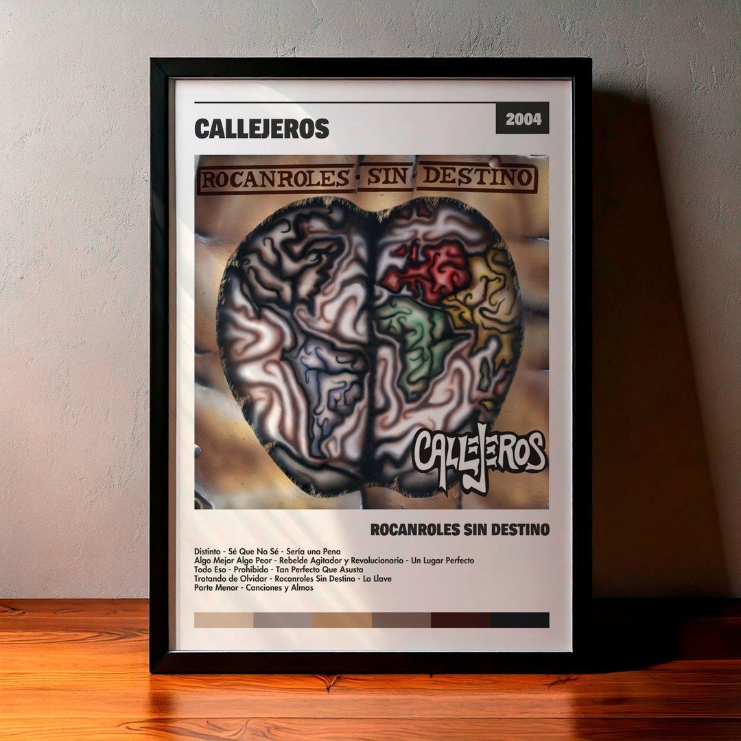 Nuestra colección de cuadros de Callejeros captura la esencia de sus álbumes más icónicos, presentados en un elegante estilo, en este caso te presentamos el de su disco Rocanroles Sin Destino.
