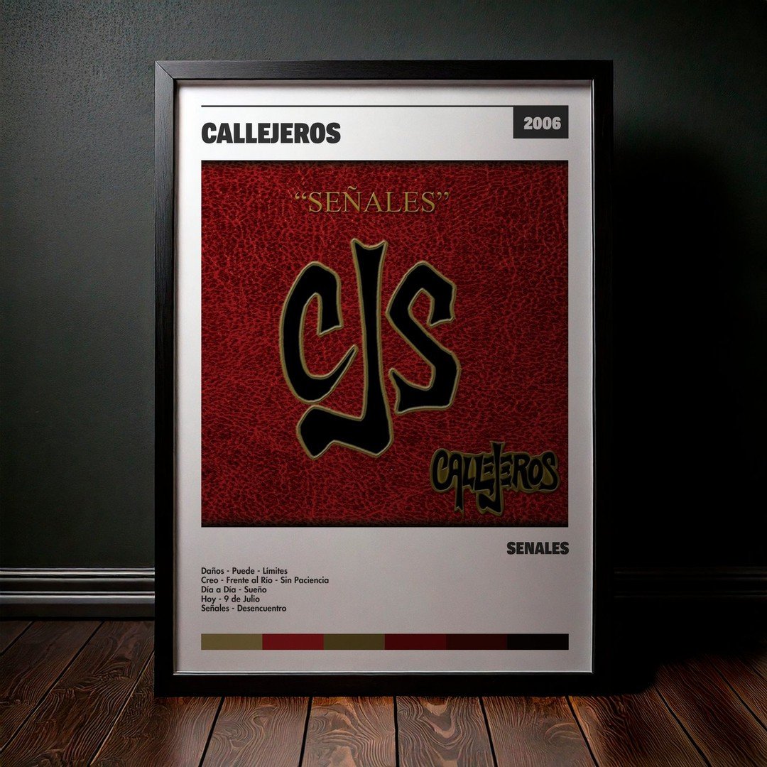 Nuestra colección de cuadros de Callejeros captura la esencia de sus álbumes más icónicos, presentados en un elegante estilo, en este caso te presentamos el de su disco Señales.
