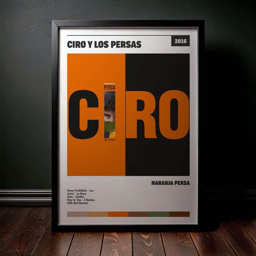 Nuestra colección de cuadros de Ciro y los Persas captura la esencia de sus álbumes más icónicos, presentados en un elegante estilo, en este caso te presentamos el de su disco Naranja Persa.