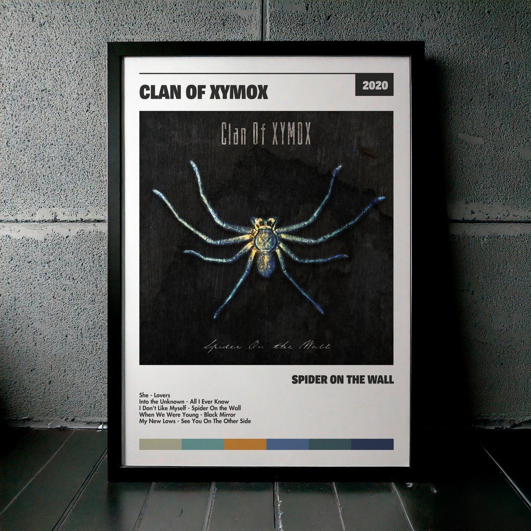 Nuestra colección de cuadros de Clan of Xymox captura la esencia de sus álbumes más icónicos, presentados en un elegante estilo, en este caso te presentamos el de su disco Spider On the Wall.