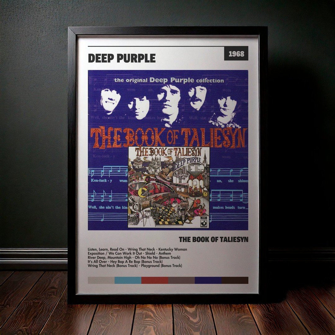 Nuestra colección de cuadros de Deep Purple captura la esencia de sus álbumes más icónicos, presentados en un elegante estilo, en este caso te presentamos el de su disco The Book of Taliesyn.