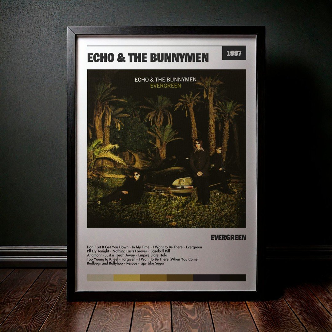Nuestra colección de cuadros de Echo & the Bunnymen captura la esencia de sus álbumes más icónicos, presentados en un elegante estilo, en este caso te presentamos el de su disco Evergreen.