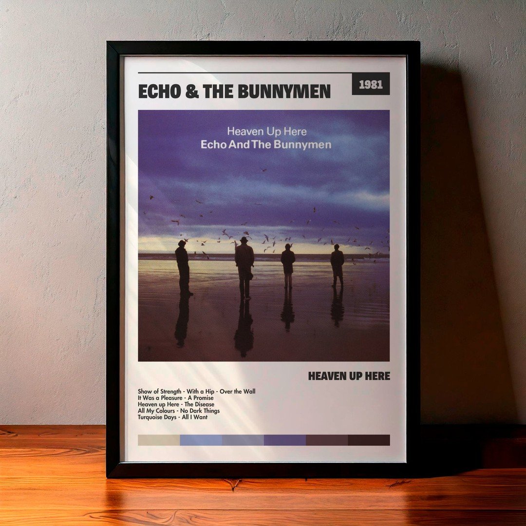 Nuestra colección de cuadros de Echo & the Bunnymen captura la esencia de sus álbumes más icónicos, presentados en un elegante estilo, en este caso te presentamos el de su disco Heaven up Here.