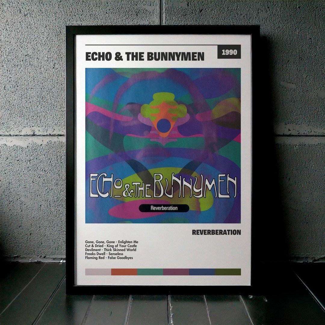 Nuestra colección de cuadros de Echo & the Bunnymen captura la esencia de sus álbumes más icónicos, presentados en un elegante estilo, en este caso te presentamos el de su disco Reverberation.