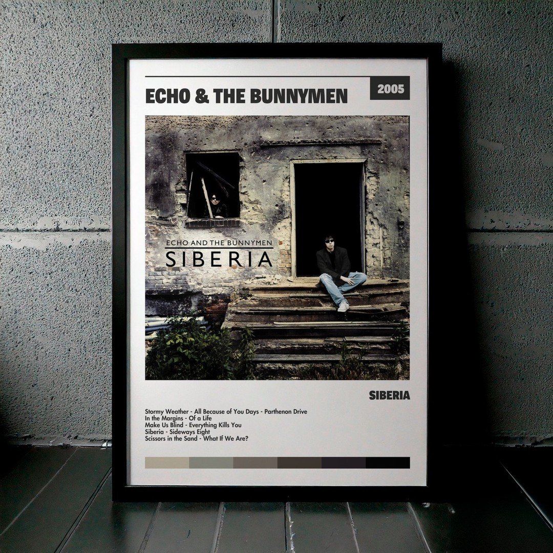 Nuestra colección de cuadros de Echo & the Bunnymen captura la esencia de sus álbumes más icónicos, presentados en un elegante estilo, en este caso te presentamos el de su disco Siberia.