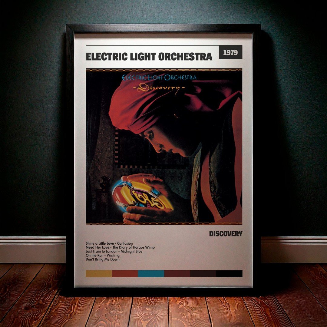 Nuestra colección de cuadros de Electric Light Orchestra captura la esencia de sus álbumes más icónicos, presentados en un elegante estilo, en este caso te presentamos el de su disco Discovery.