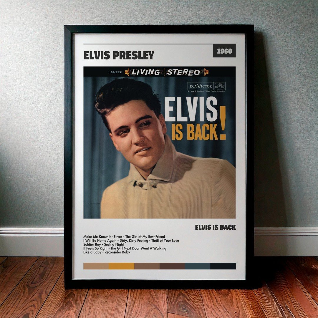 • Diseño Exclusivo: Cuadro de alta calidad basado en la portada del álbum Elvis Is Back de Elvis Presley.