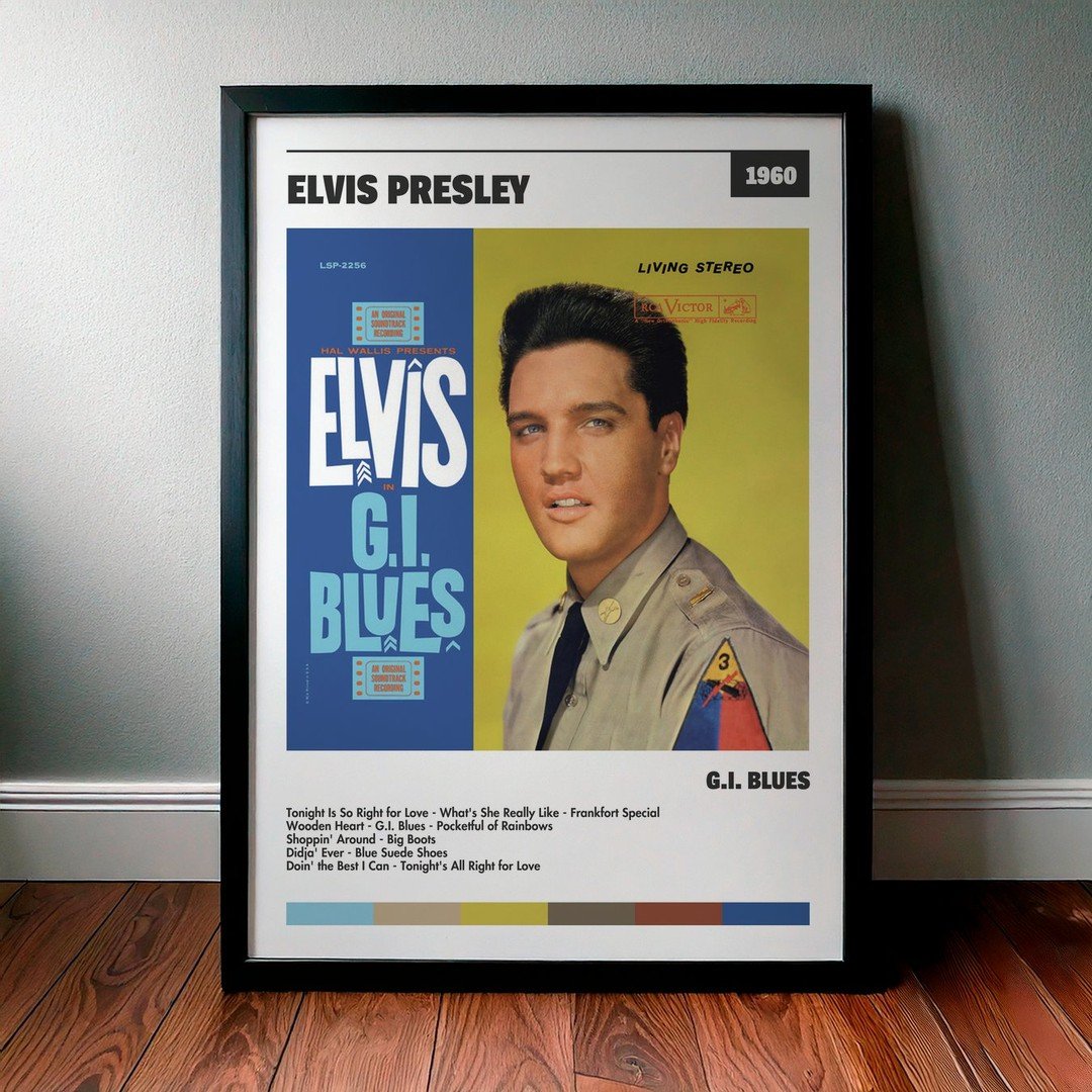 Diseño Exclusivo: Cuadro de alta calidad basado en la portada del álbum G.I. Blues de Elvis Presley.