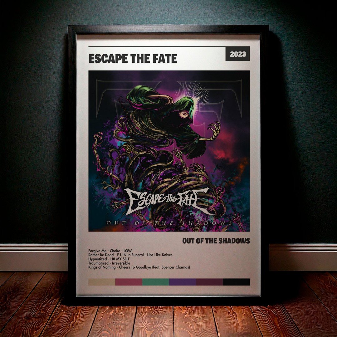 Nuestra colección de cuadros de Escape the Fate captura la esencia de sus álbumes más icónicos, presentados en un elegante estilo, en este caso te presentamos el de su disco Out Of The Shadows.