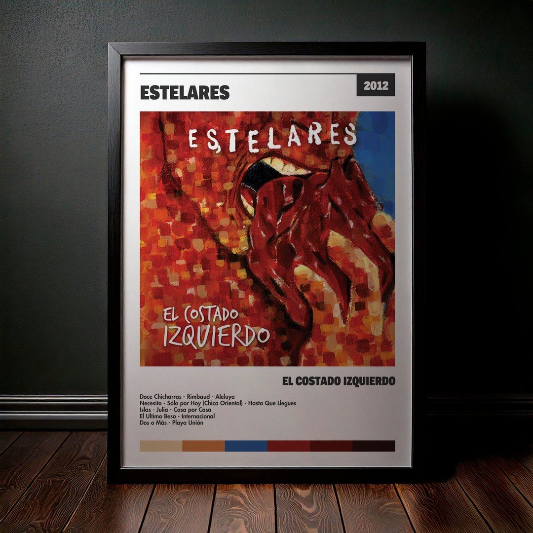 Nuestra colección de cuadros de Estelares captura la esencia de sus álbumes más icónicos, presentados en un elegante estilo, en este caso te presentamos el de su disco El Costado Izquierdo.