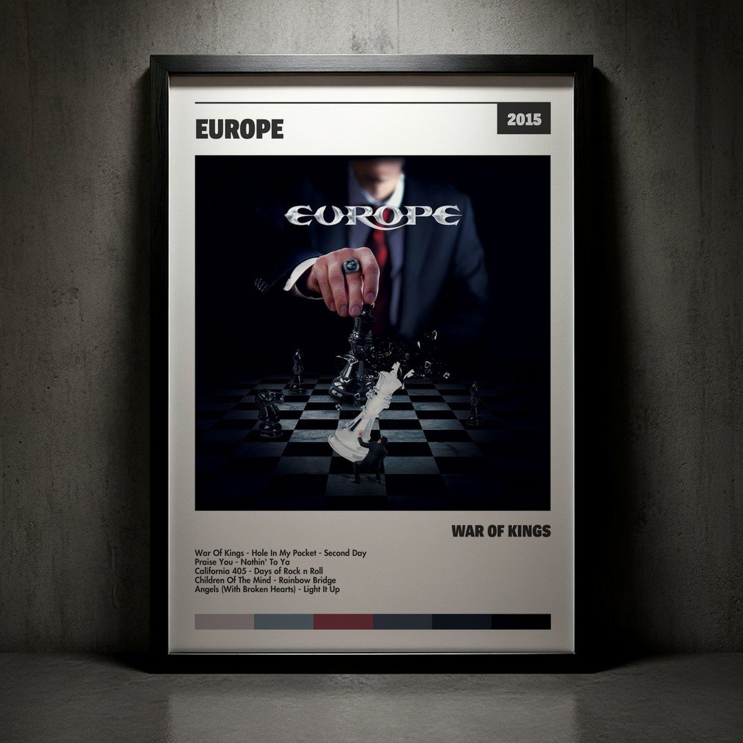 Nuestra colección de cuadros de Europe captura la esencia de sus álbumes más icónicos, presentados en un elegante estilo, en este caso te presentamos el de su disco War Of Kings.