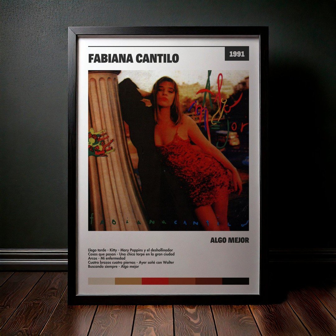 Nuestra colección de cuadros de Fabiana Cantilo captura la esencia de sus álbumes más icónicos, presentados en un elegante estilo, en este caso te presentamos el de su disco Algo mejor.