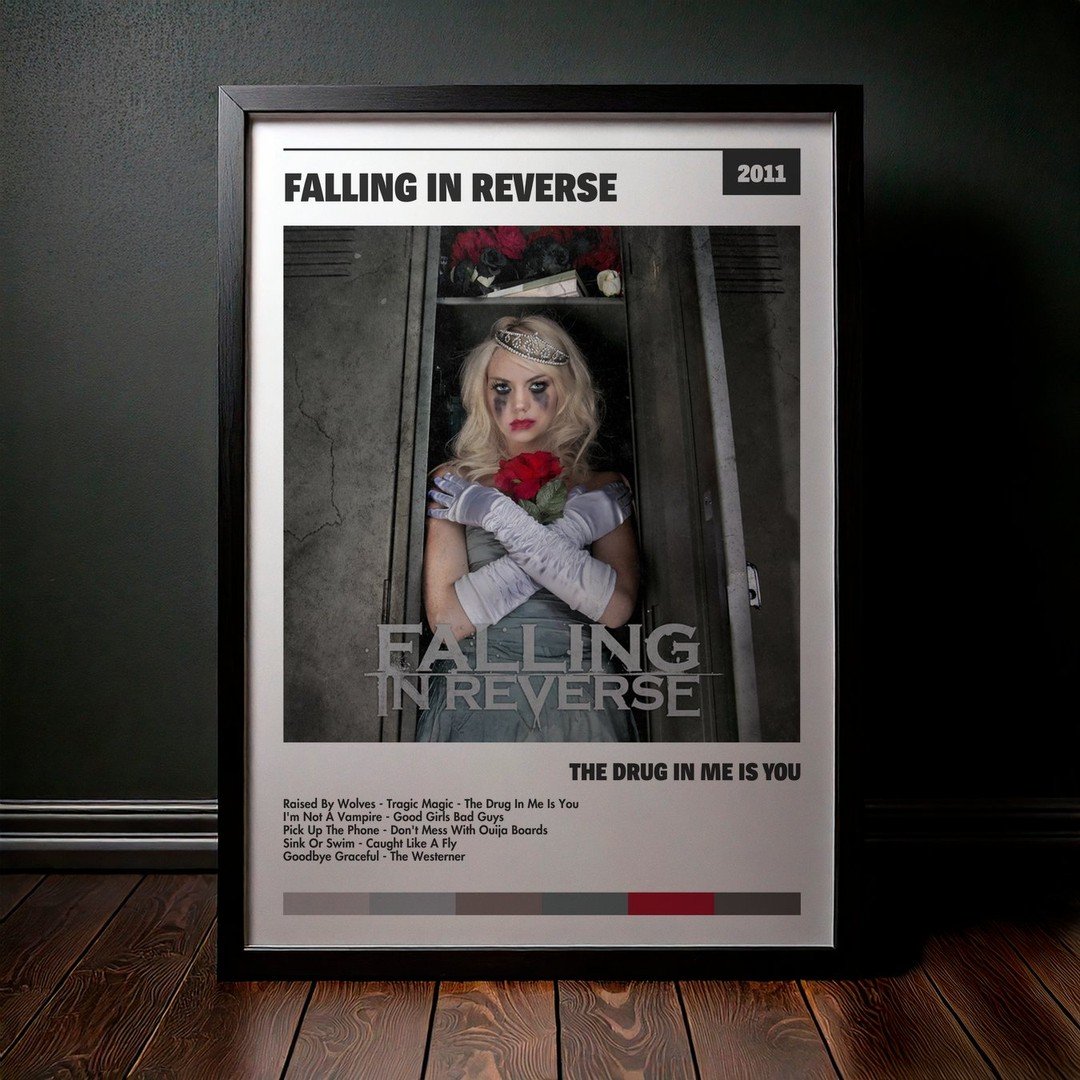 • Diseño Exclusivo: Cuadro de alta calidad basado en la portada del álbum The Drug In Me Is You de Falling In Reverse.