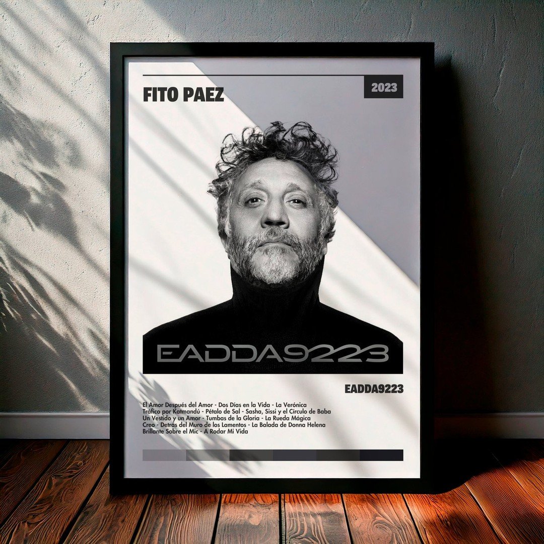 Nuestra colección de cuadros de Fito Paez captura la esencia de sus álbumes más icónicos, presentados en un elegante estilo, en este caso te presentamos el de su disco EADDA9223.