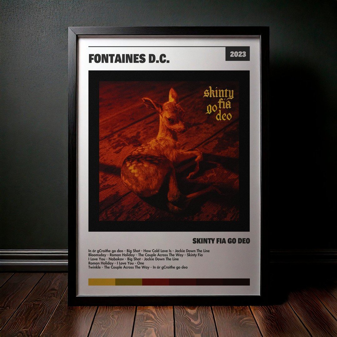 Nuestra colección de cuadros de Fontaines D.C. captura la esencia de sus álbumes más icónicos, presentados en un elegante estilo, en este caso te presentamos el de su disco Skinty Fia go deo.