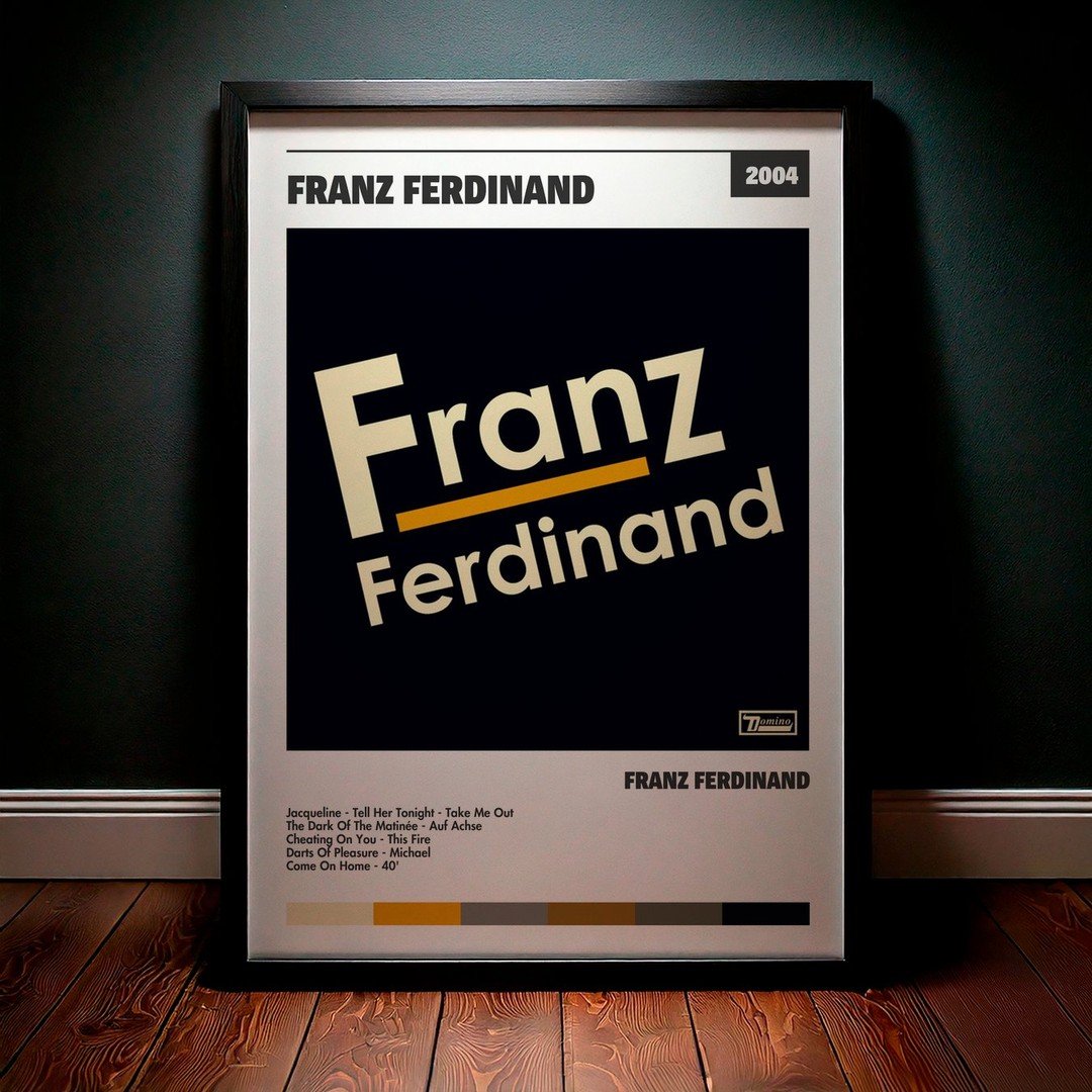 Nuestra colección de cuadros de Franz Ferdinand captura la esencia de sus álbumes más icónicos, presentados en un elegante estilo, en este caso te presentamos el de su disco Franz Ferdinand.