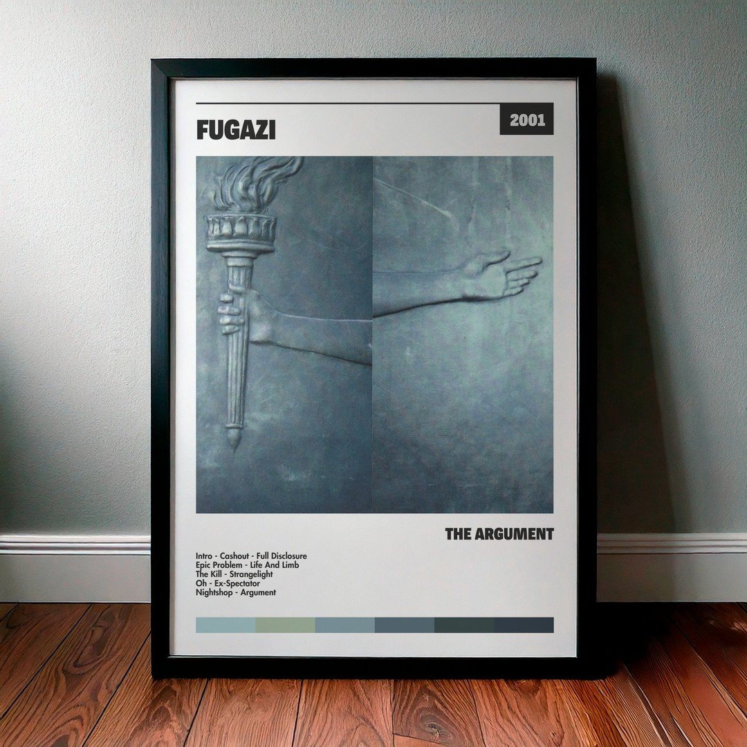 Nuestra colección de cuadros de Fugazi captura la esencia de sus álbumes más icónicos, presentados en un elegante estilo, en este caso te presentamos el de su disco The Argument.