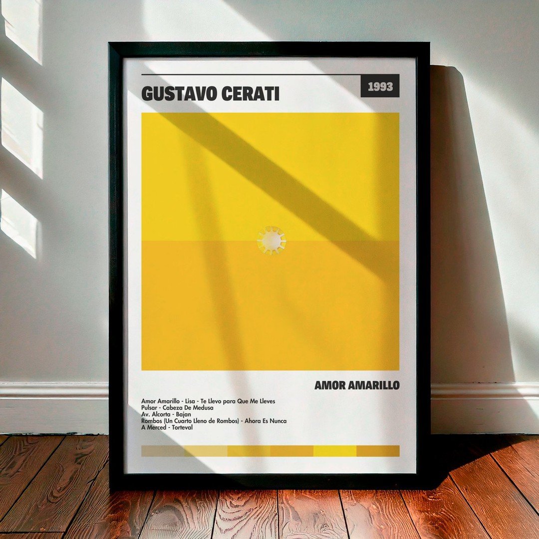 • Diseño Exclusivo: Cuadro de alta calidad basado en la portada del álbum Amor Amarillo de Gustavo Cerati.