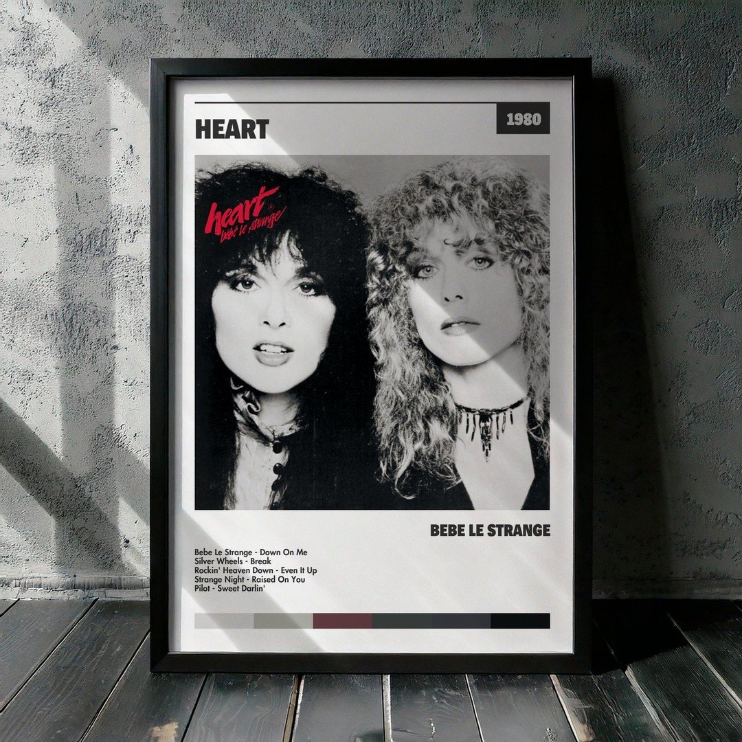 Nuestra colección de cuadros de Heart captura la esencia de sus álbumes más icónicos, presentados en un elegante estilo, en este caso te presentamos el de su disco Bebe Le Strange.