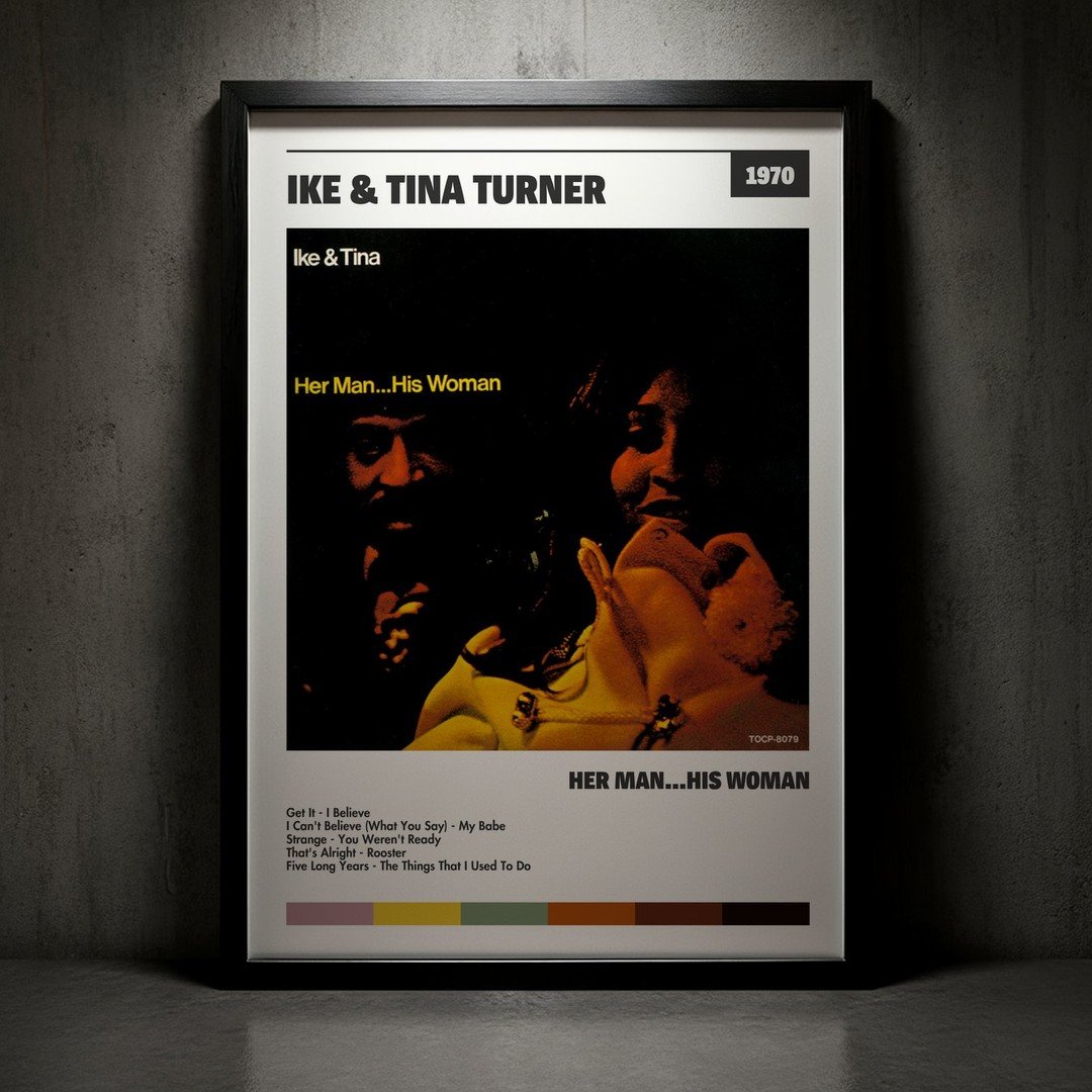 Nuestra colección de cuadros de Ike & Tina Turner captura la esencia de sus álbumes más icónicos, presentados en un elegante estilo, en este caso te presentamos el de su disco Her Man…His Woman.