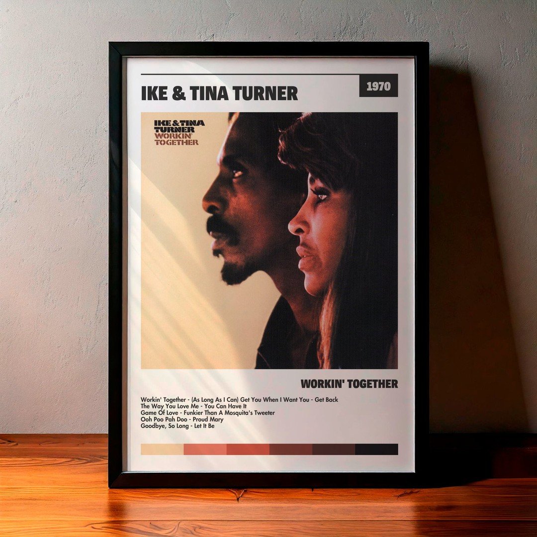 Nuestra colección de cuadros de Ike & Tina Turner captura la esencia de sus álbumes más icónicos, presentados en un elegante estilo, en este caso te presentamos el de su disco Workin’ Together.