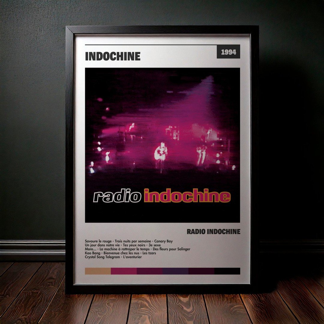 Nuestra colección de cuadros de Indochine captura la esencia de sus álbumes más icónicos, presentados en un elegante estilo, en este caso te presentamos el de su disco Radio Indochine.