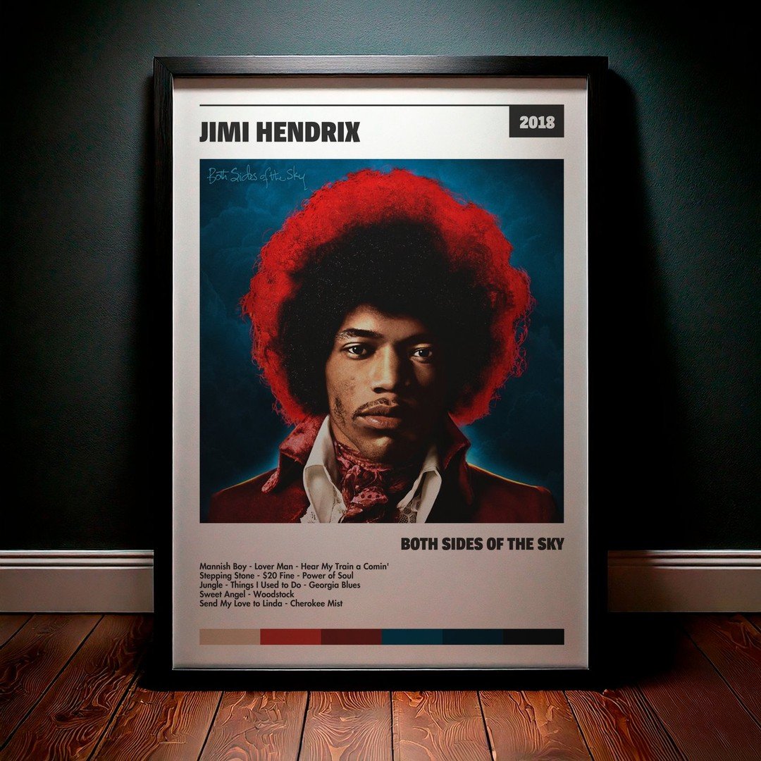 • Diseño Exclusivo: Cuadro de alta calidad basado en la portada del álbum Both Sides of the Sky de Jimi Hendrix.