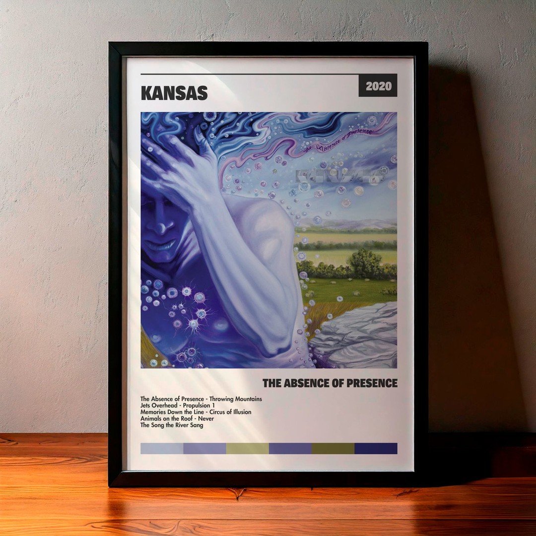 Nuestra colección de cuadros de Kansas captura la esencia de sus álbumes más icónicos, presentados en un elegante estilo, en este caso te presentamos el de su disco The Absence of Presence.