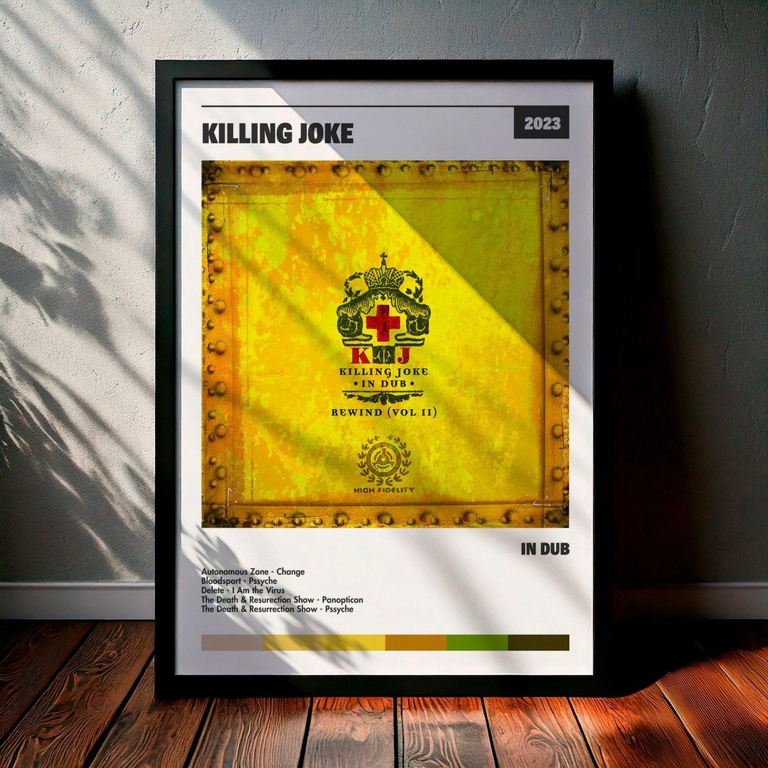 Nuestra colección de cuadros de Killing Joke captura la esencia de sus álbumes más icónicos, presentados en un elegante estilo, en este caso te presentamos el de su disco In Dub.